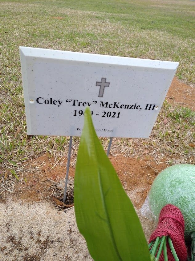 Surviving are his wife of 31 years, Lydia Arledge “Tina” McKenzie; sons, Coley “Lee” McKenzie, IV, and Dalton Ryan McKenzie; mother, Sharon McKenzie; and sisters, Tammy Bowers (Joe) and Tonya Melton (Brian).