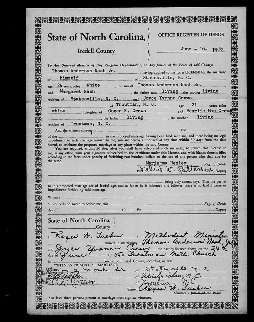 On October 24, 1980 Joyce Crews was listed as the living mother on the obituary of Thomas Anderson Nash.