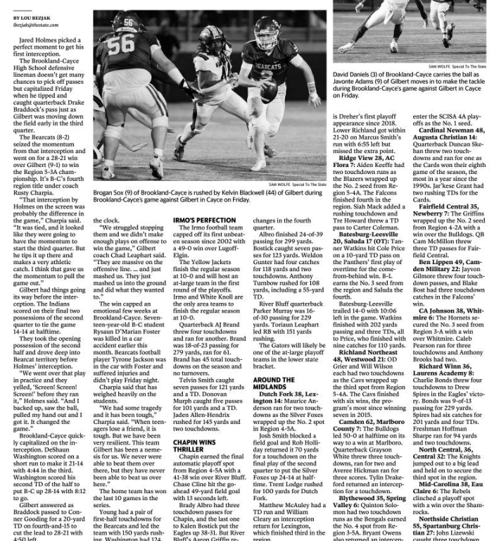 The win capped an emotional few weeks at Brookland-Cayce. Seventeen-year-old B-C student Rysaun D’Marian Foster was killed in a car accident earlier this month. Bearcats football player Tyrone Jackson was in the car with Foster and suffered injuries and didn’t play Friday night.