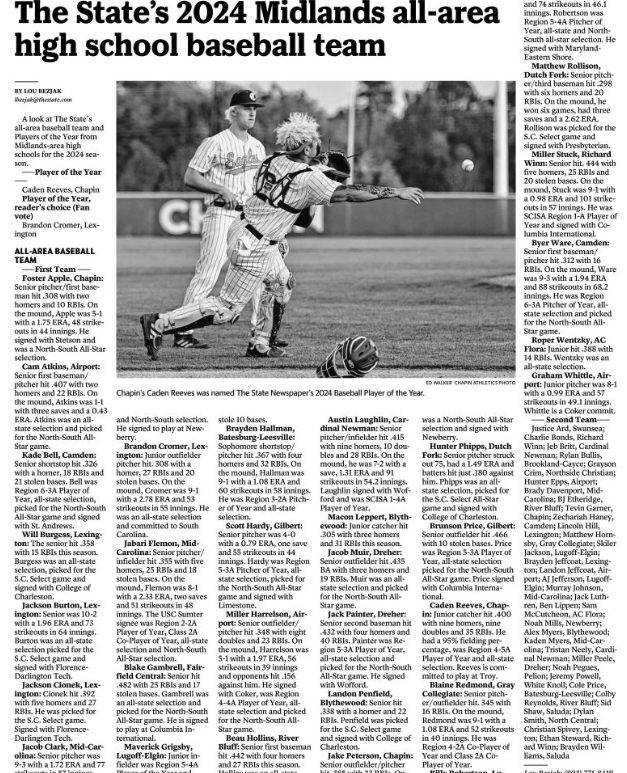 A look at The State’s all-area softball team and Players of the Year from Midlands-area high schools for the 2024 season. –Player of the Year — Aspen Boulware, Gray Collegiate Player of the Year, reader’s choice (Fan vote) Precious Bross, Irmo All-Area Softball Team –First Team — Grace Beachem, Hammond: Shortstop/pitcher was SCISA 1-4A Player of the Year for third straight season. At the plate, … Continue reading The State’s 2024 Midlands all-area high school softball team