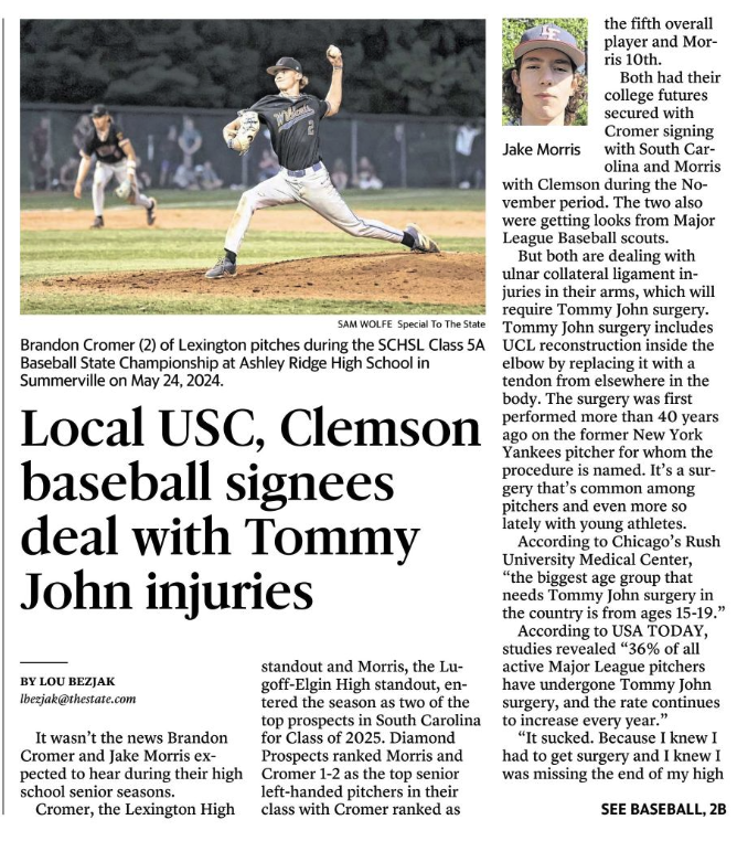 Cromer, the Lexington High standout and Morris, the Lugoff-Elgin High standout, entered the season as two of the top prospects in South Carolina for Class of 2025. Diamond Prospects ranked Morris and Cromer 1-2 as the top senior left-handed pitchers in their class with Cromer ranked as the fifth overall player and Morris 10th.