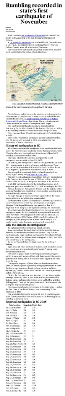 It had been typical for South Carolina to have between six and 10 earthquakes a year, the S.C. Geological Survey previously reported. There have been 179 earthquakes in South Carolina since Jan. 18, 2021 , according to DNR . During a 2022 town hall to address the earthquakes, state geologist Scott Howard said as many as 200 smaller tremors might have gone unnoticed and unrecorded.