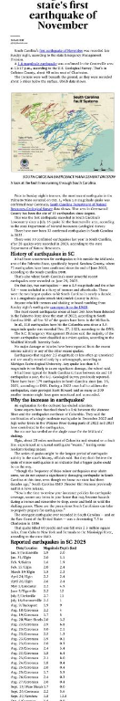 It had been typical for South Carolina to have between six and 10 earthquakes a year, the S.C. Geological Survey previously reported. There have been 179 earthquakes in South Carolina since Jan. 18, 2021 , according to DNR . During a 2022 town hall to address the earthquakes, state geologist Scott Howard said as many as 200 smaller tremors might have gone unnoticed and unrecorded.
