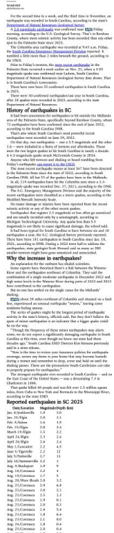 It had been typical for South Carolina to have between six and 10 earthquakes a year, the S.C. Geological Survey previously reported. There have been 181 earthquakes in South Carolina since Jan. 18, 2021, according to DNR. During a 2022 town hall to address the earthquakes, state geologist Scott Howard said as many as 200 smaller tremors might have gone unnoticed and unrecorded.